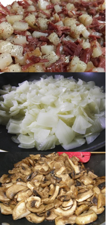 You can make a potato, onion and mushroom scramble or a frittata with the same
